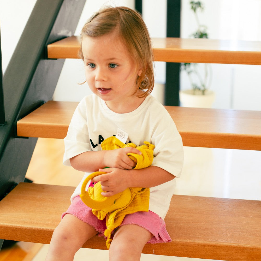 Aus Holz und Musselin, geeignet zur Linderung von Zahnungsbeschwerden.